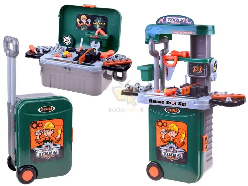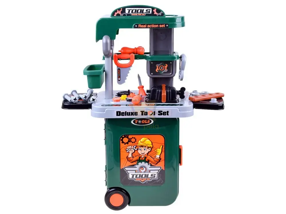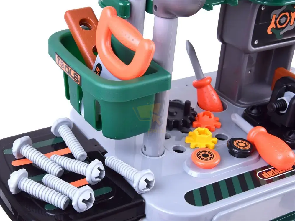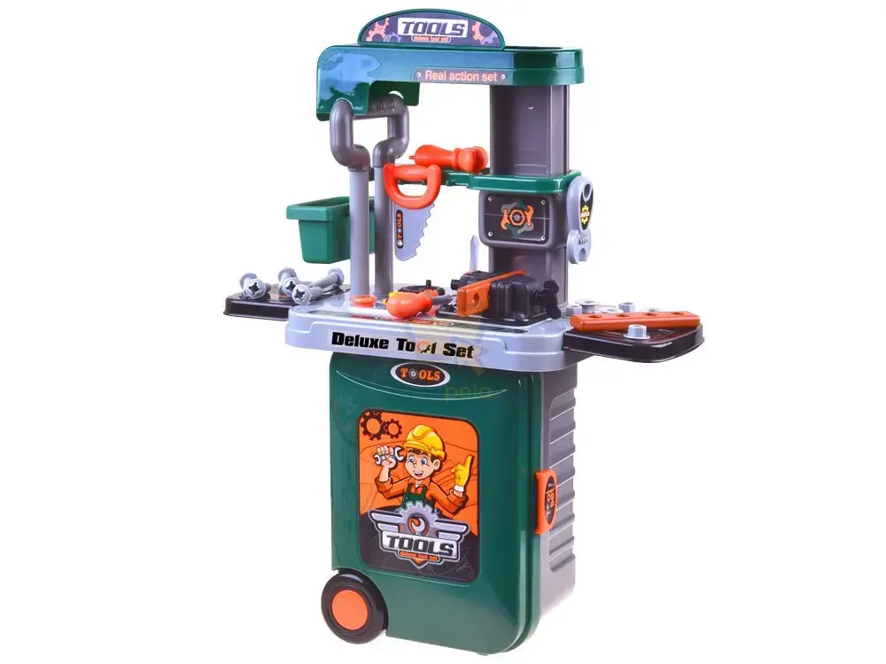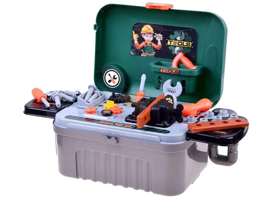 A multi-element set for a small DIY enthusiast will work in every child's garage. The 3in1 set is a suitcase, workshop, table top for a young DIY enthusiast. The whole thing is made of plastic, thanks to the modular system, it is the child who decides what form his workshop will be in.