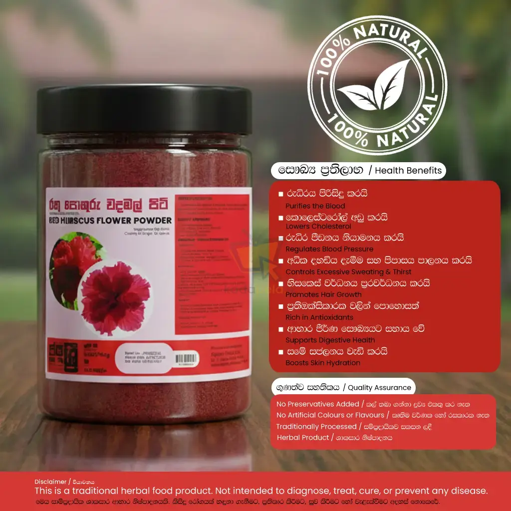 Red Hibiscus Flower Powder – natural herbal powder for teas, skincare, and wellness. Supports digestion, detox, and overall vitality.